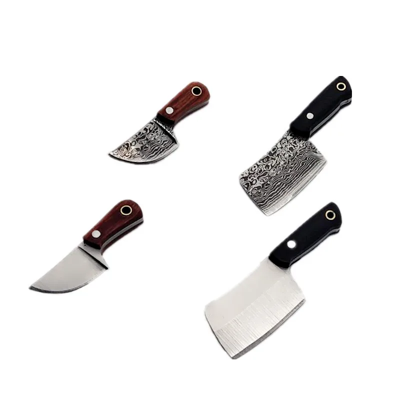Мини Портативный дамасский нож для ключей, кухонный EDC нож с фиксированным лезвием, нож с острым лезвием, прямой нож с подвеской для ключей