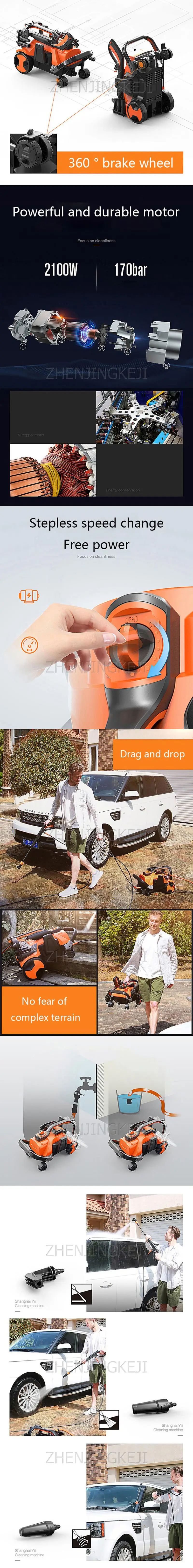 1. Самовсасывание 2. Регулируемое давление воды 3. Автоматический спрей для пены 4. Защита от перегрузки 5. Три вида пистолетов 6. Выключение переключателя 7. Защита от перегрева 8. Защита от утечки 9. Подключение к 220 В Название продукта: мойка автомобиля высокого давления Модель продукта: YLQ5740CT-A Напряжение: 220V Частота: 50 Гц Мощность: 2100W Расход: 9 л/мин Давление: 120 бар ~ 170 бар Водонепроницаемый Рейтинг: IPX5 Метод охлаждения двигателя: воздушное охлаждение Материал механизма: чистая медь Тип источника воды: самозаправляемый кран Является ли это протектором утечки: Да Автоматическое включение или выключение: Да Тип оборудования для автомойки: Бытовая Машина для мойки автомобилей Вес брутто: 14,5 кг Размер упаковки: 560x455x438mm