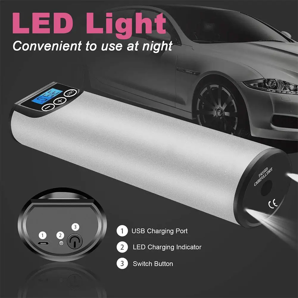 1. Аккумулятор большой емкости 2000 мАч: Этот портативный воздушный компрессор, встроенный Сертифицированный перезаряжаемый литий-ионный аккумулятор 2000 мАч и usb-порт для зарядки для поддержки быстрой зарядки.Характеристики: