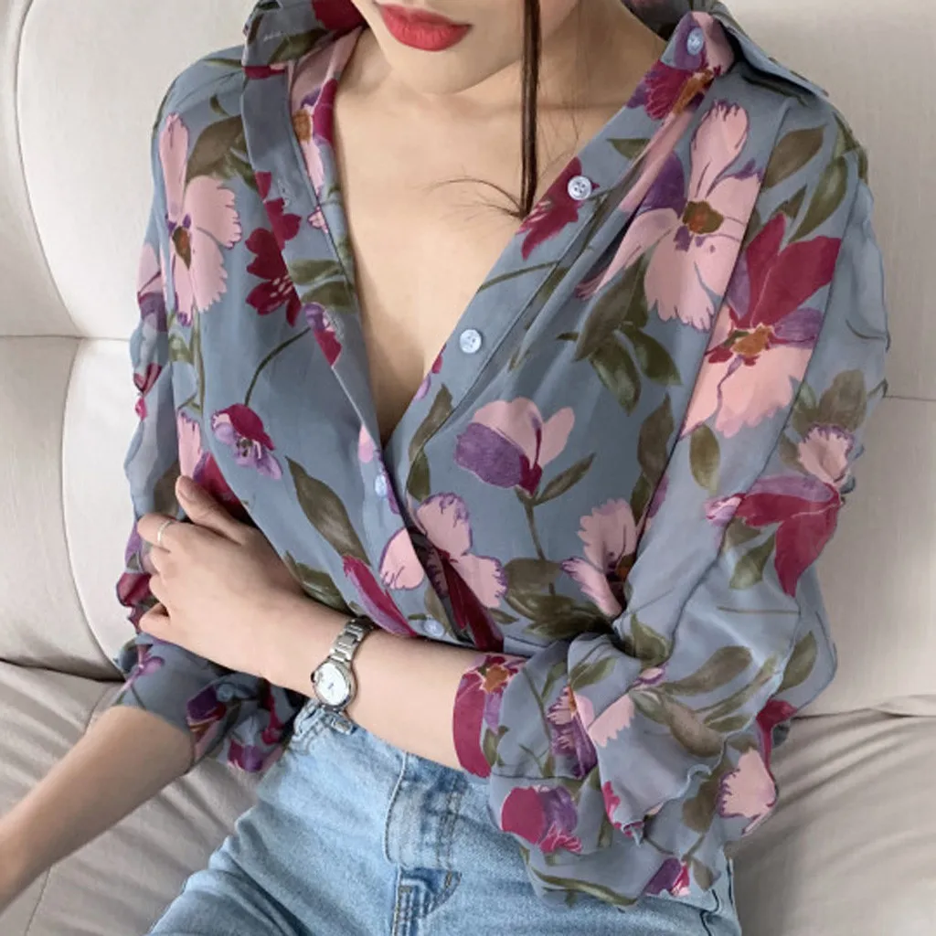 Features:Vintage,V-Neck Tops,Long Puff Sleeve,Printed Shirts.Summer and Spring Shirts.