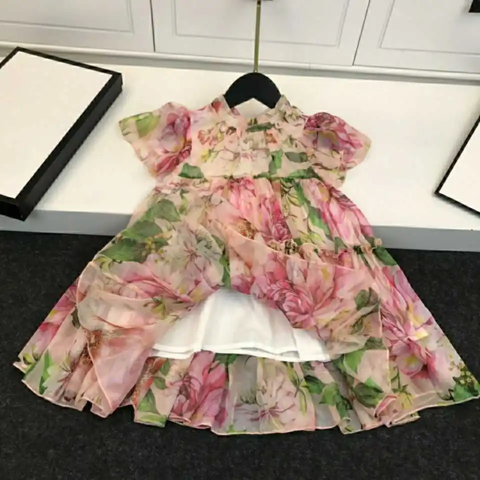 Новинка 2020 года; Летнее платье для девочек; Элегантное плиссированное платье с цветочным узором и воротником под горло для больших девочек