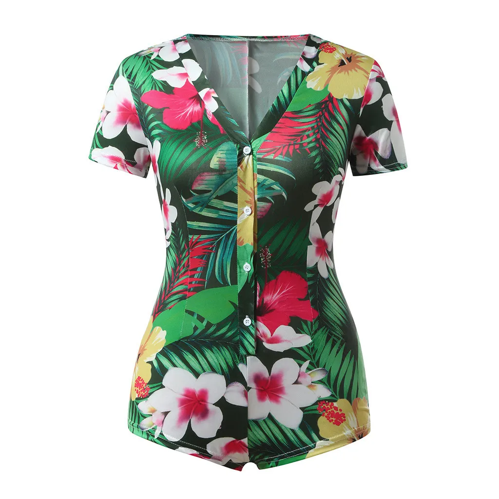 Женский хлопковый комбинезон с принтом, комбинезон с короткими рукавами, летние шорты, комбинезон