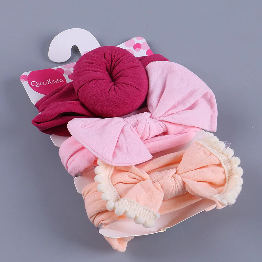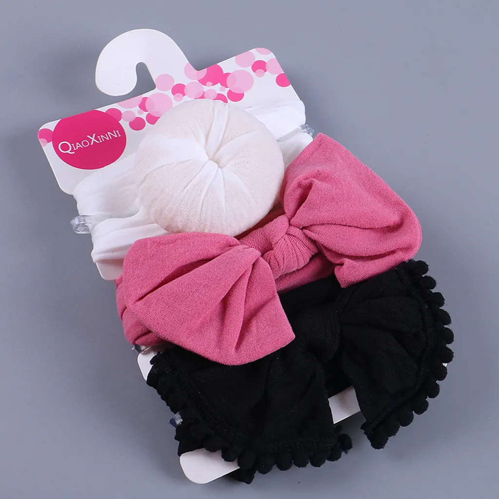 3 шт. Детская повязка на голову с цветочным рисунком для девочек, детские Эластичные аксессуары с бантом, набор для волос