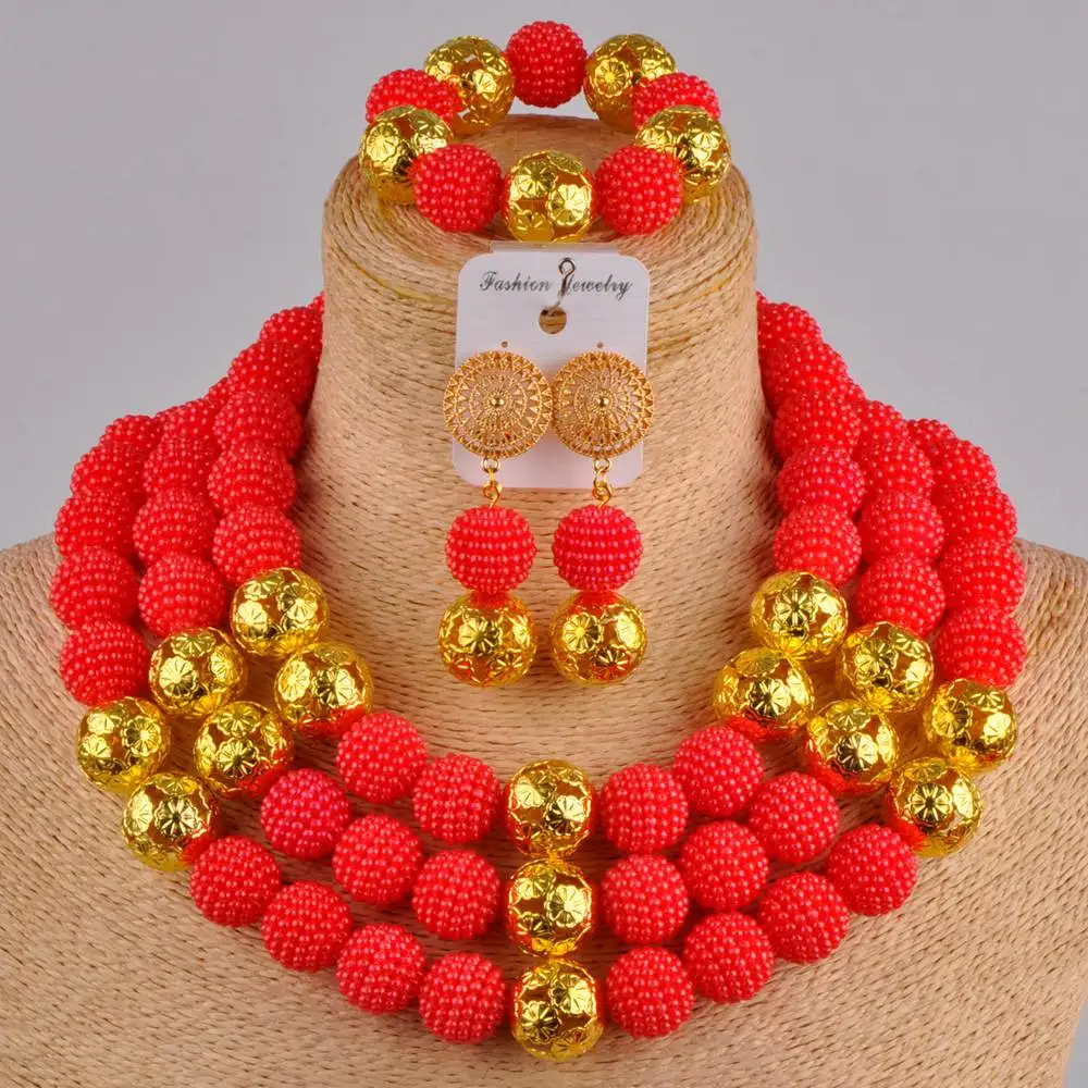 Дубай золото Красный нигерийский верддинг Коралловые бусы африканские...