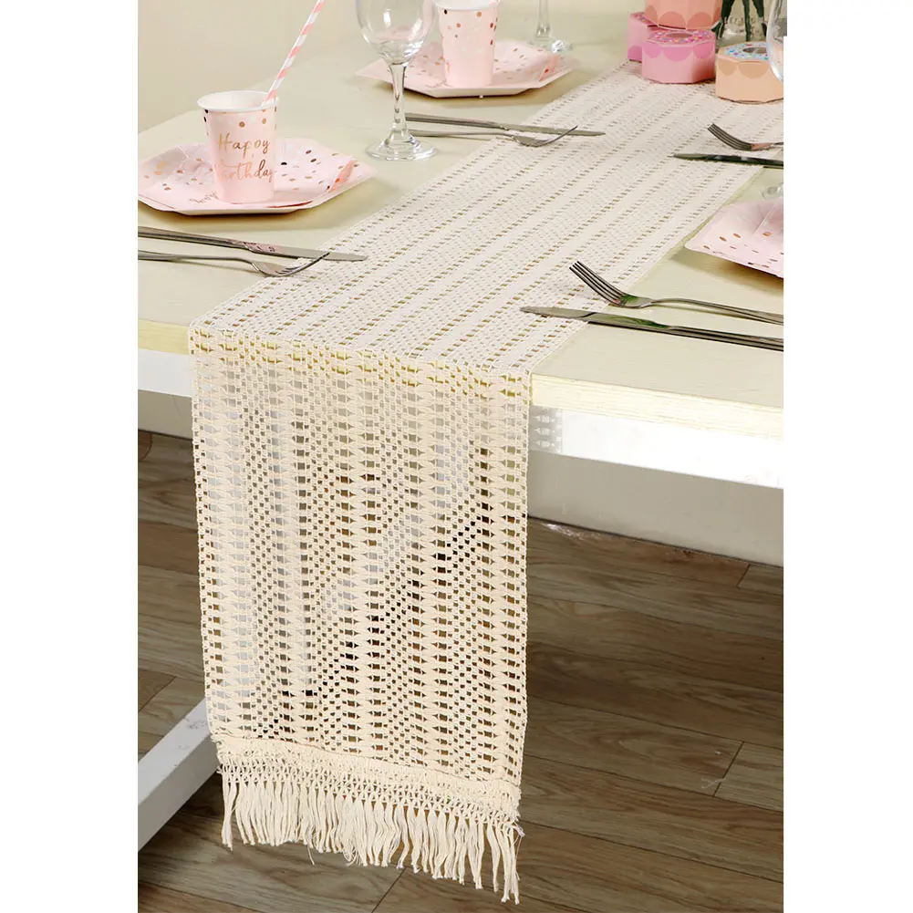 -Деликатная хлопковая ткань в полоску с кисточками, бежевая, плетеная, с дырками, дарит минимализм и создает ощущение расслабления в комнате, чтобы создать новый внешний вид вашего стола