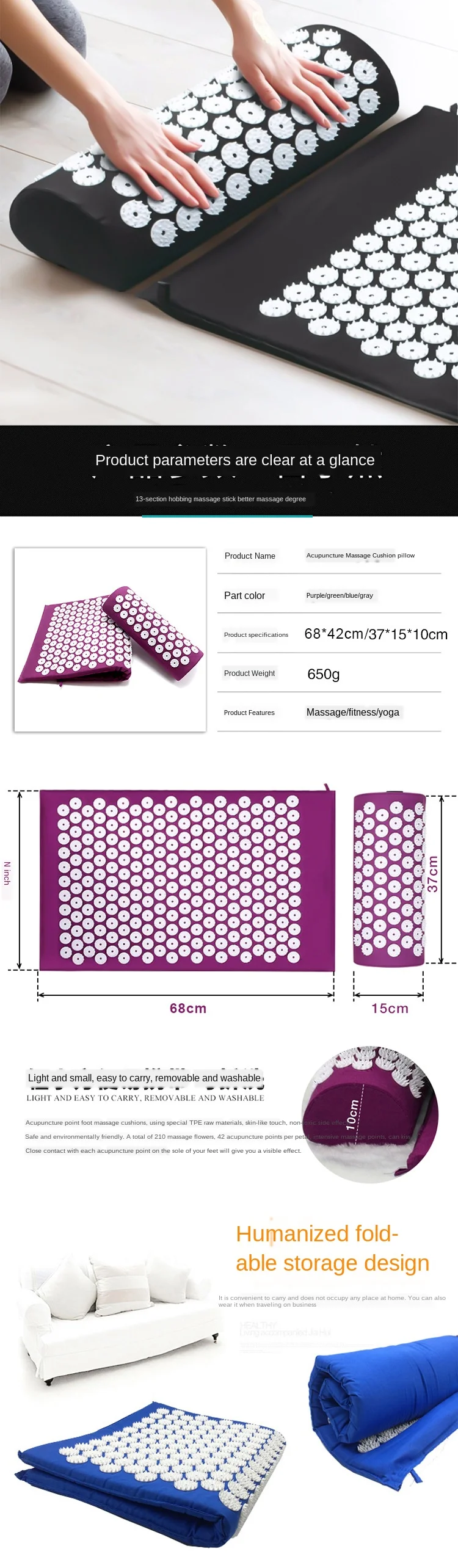 1. Коврик и подушка Акупрессура снимают стресс, боли, боли и мышечное напряжение, облегчение боли в шее и увеличивает кровообращение