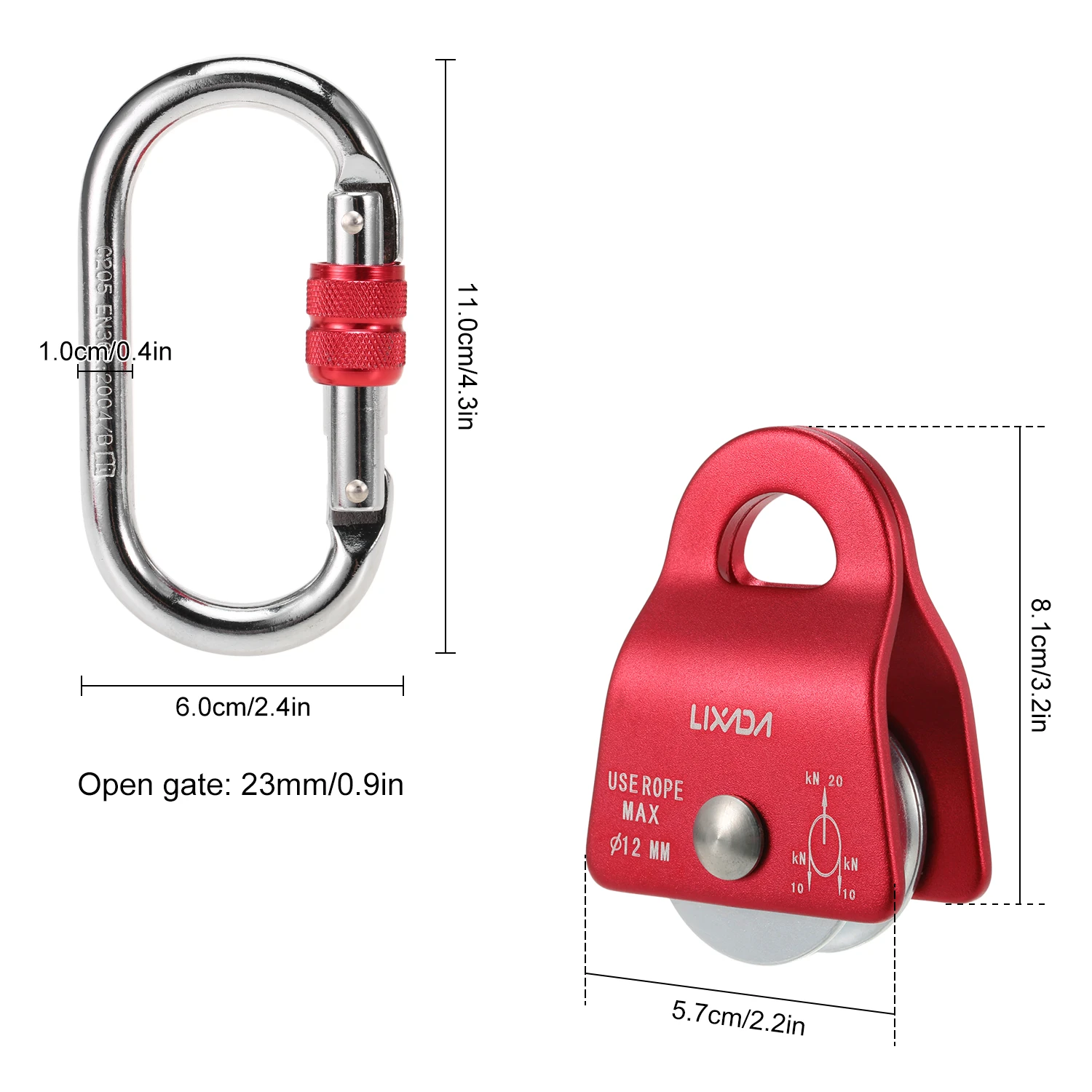 20 кН шкив и 25 кН винтовой замок карабин для высокой прочности.