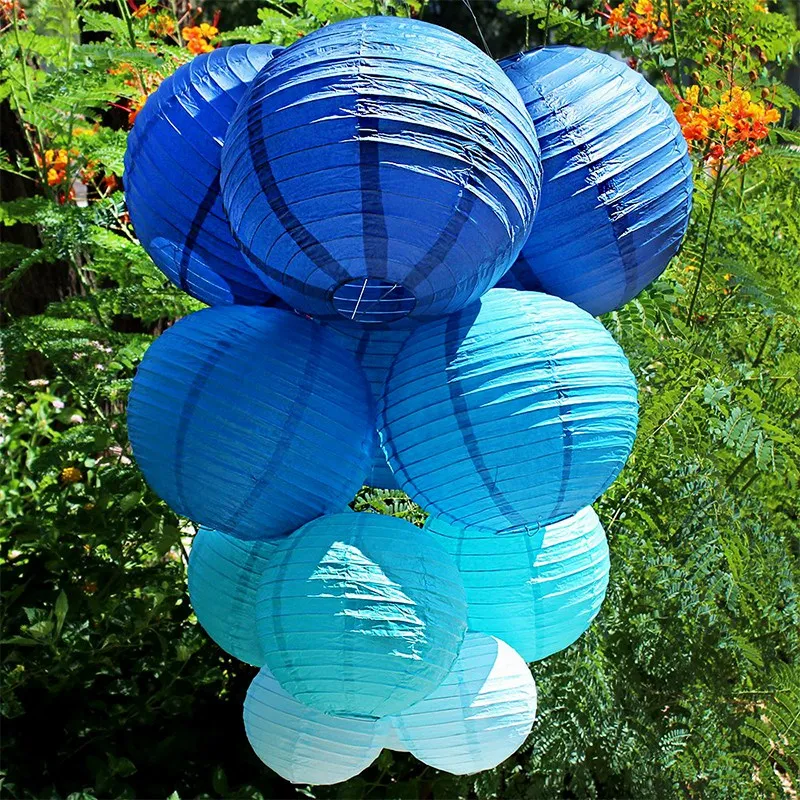 20 Pcs 6 inch-12 inch Blue Paper Lanterns Chinese Japanese Assorted Sizes & Colors Lampion for Wedding Party Hanging Outdoor Diy