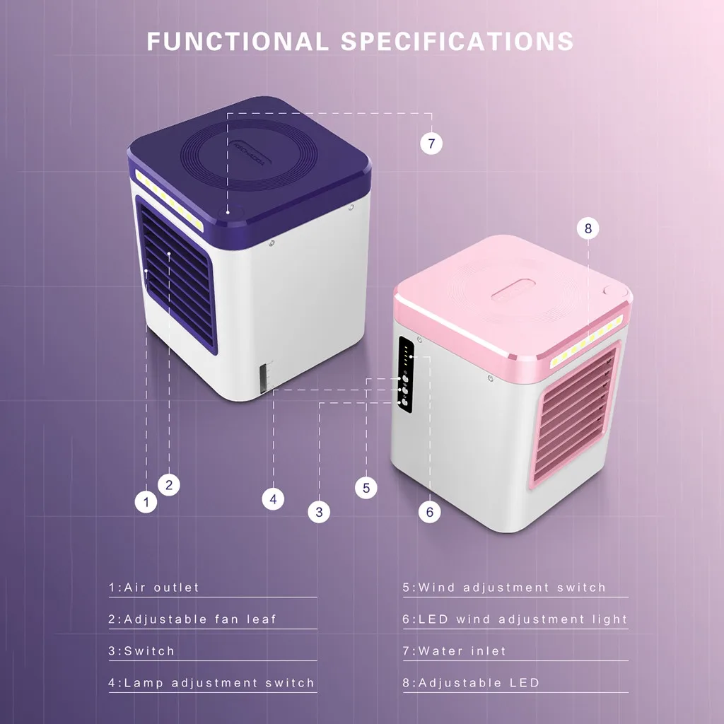 Свежий, увлажненный и очищенный, чтобы улучшить воздух.Охлаждение, энергосбережение, защита окружающей среды, Очищение воздуха, портативное