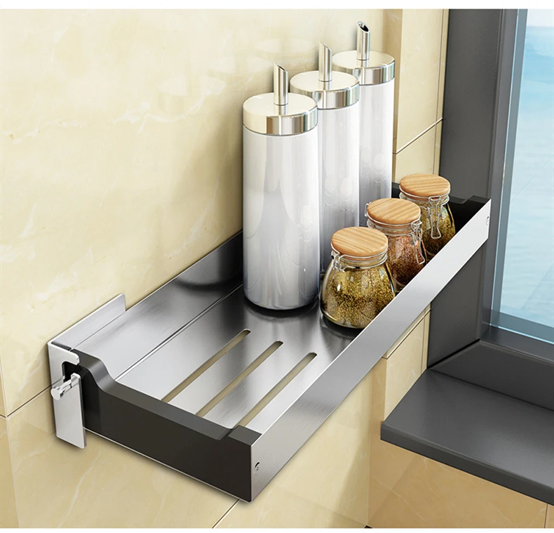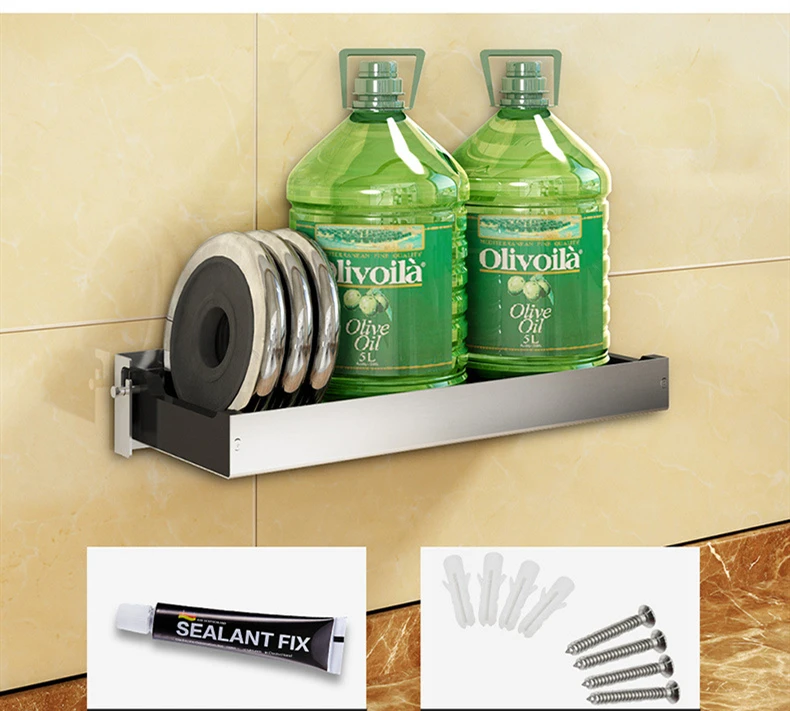 Кухонная стойка для специй Изготовлена из прочной и не ржавчины нержавеющей стали 304. Мы предлагаем липкий клей и srcews, вы можете выбрать сверление или нет.