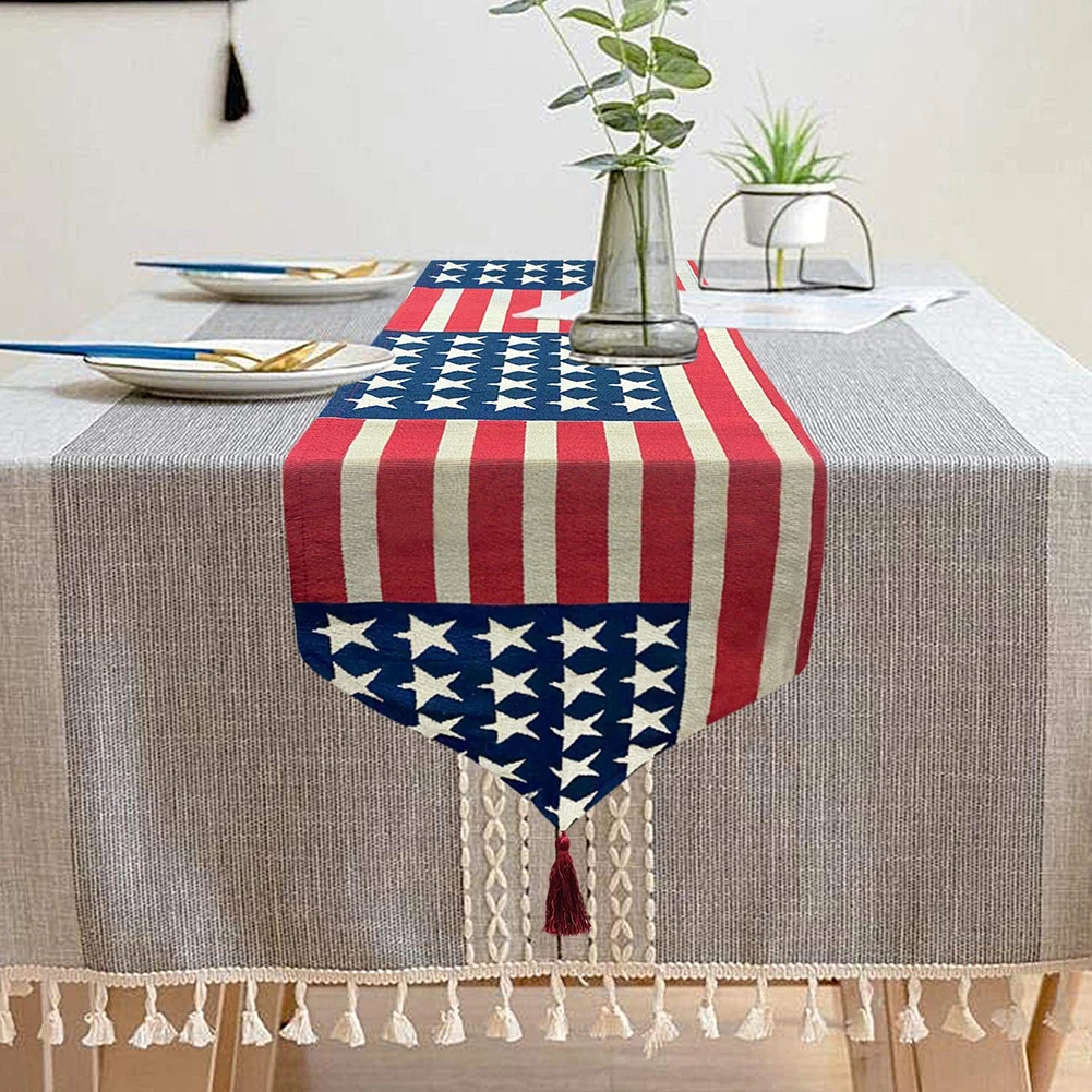 180 см Флаг США звезды скатерть в полоску обеденный стол бегун крышка праздничный Декор