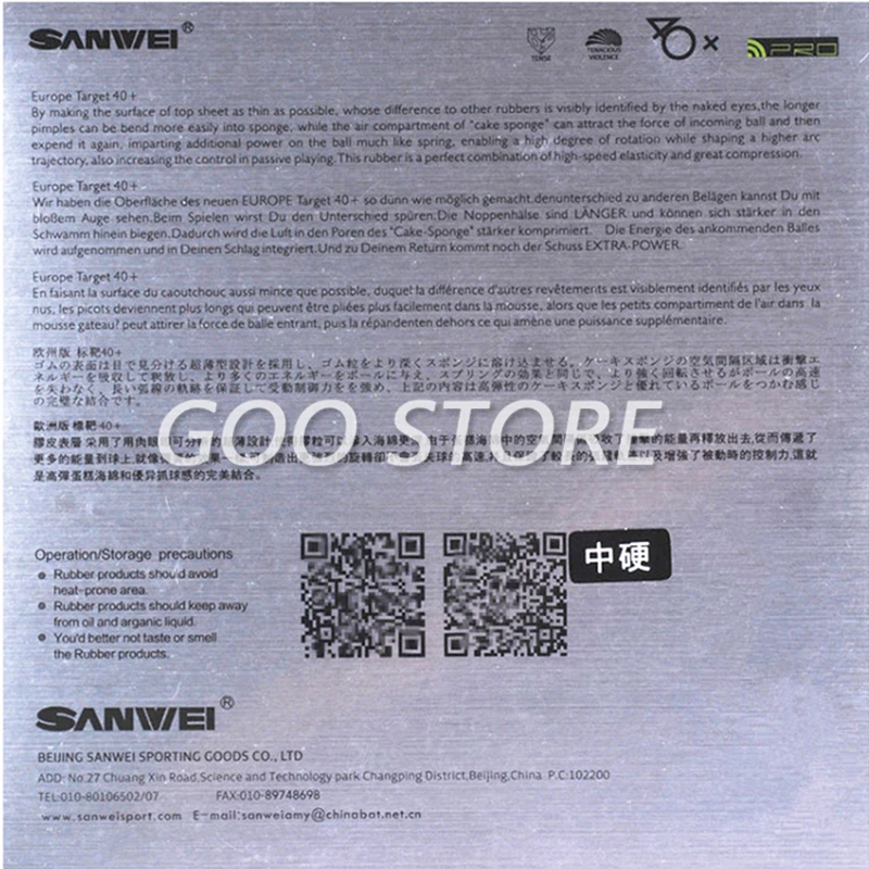 Sanwei TARGET PRO: Сделав поверхность верхний лист, очень тонкие, насколько это возможно, которых в отличие от других каучуков заметно определенных невооруженным глазом, чем дольше от угревой сыпи может быть изгиб более позволяет хранить его в губки, В то время как воздушный отсек «Губка для торта» может притягивать силу входящего мяча, а затем снова использовать его, Придайте дополнительной мощности мячу, как пружина, что обеспечивает высокую степень вращения, при этом формируя более высокую траекторию дуги, а также увеличивая контроль в пассивной игре. Эта Резина является идеальным сочетанием высокоскоростной эластичности и большого сжатия. Тип: быстрая атака/петля Скорость: 14 Спина: 13,5 Толщина: 2,05 мм Sanwei TARGET FX: Предназначен для игроков, которые следят за вращением и контролем мяча, по сравнению с Target 40 +, версия FX более гибкая, предлагает вам заметный скачок, четкое сжатие и более длительную траекторию дуги. Это не только помогает новым клиентам быстро узнавать информацию, но и подходит для высококлассных игроков, которые охотятся на заднюю руку. Тип: быстрая атака/петля Скорость: 14,3 Спина: 13 Толщина: 2,1 мм
