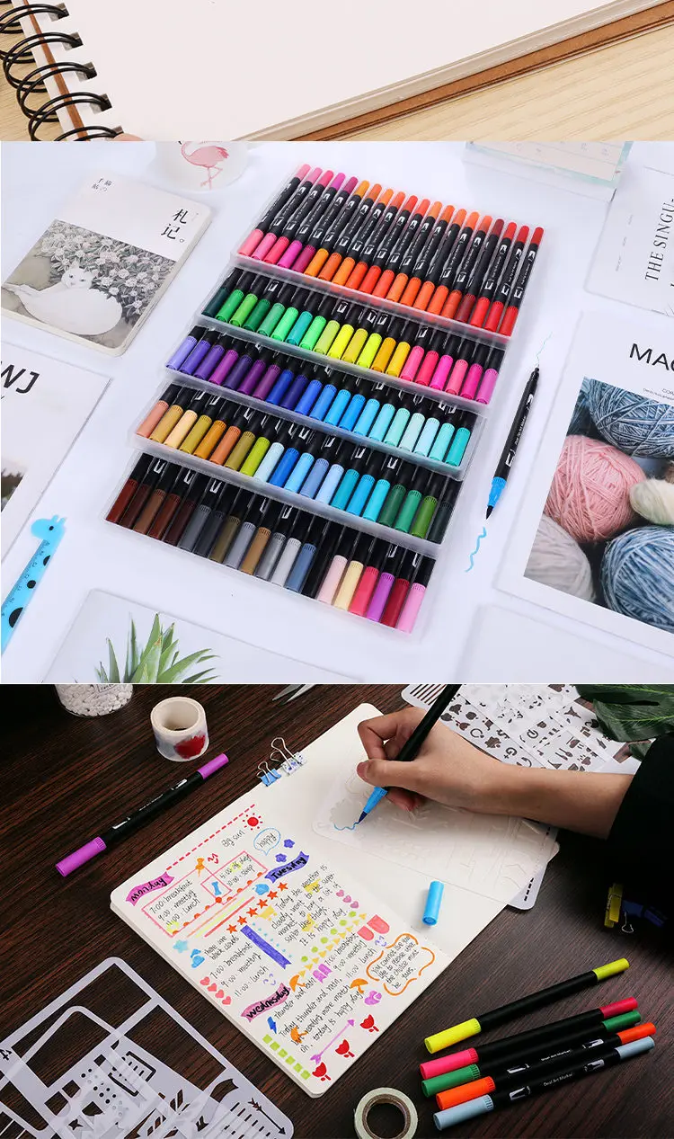 Акварельная ручка с двойной головкой, набор маркеров 12/24/36/100 цветов/принадлежности для ручек для комиксов, эскиз, маркеры на спиртовой основе