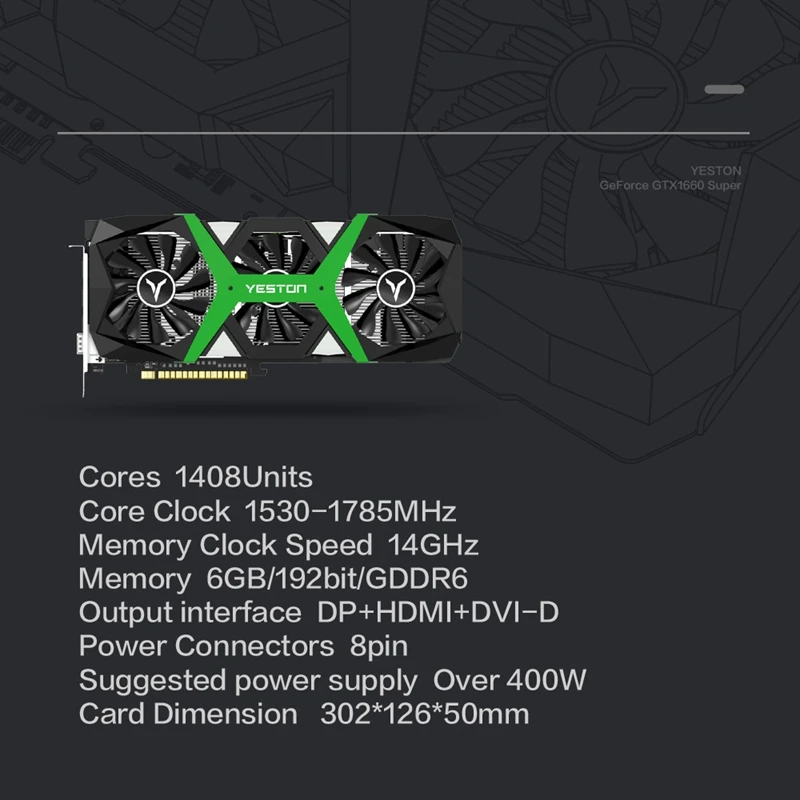 Yeston GTX1660 Super-6G D6 PA 6G GDDR6 192Bit 1530/1785MHz 12Nm Gaming Video ie Card
