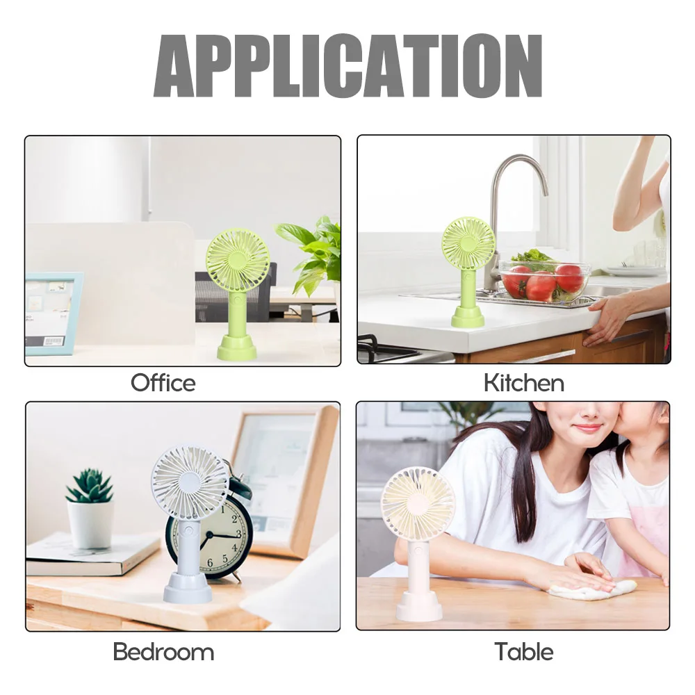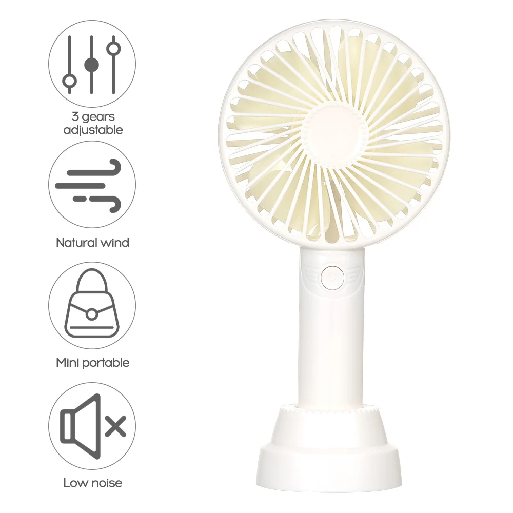 Мини ручной вентилятор портативный для различных случаев, 3 шестерни для регулировки, чтобы принести вам естественный ветер. Он имеет подставку, чтобы положить его на стол или взять в руки.