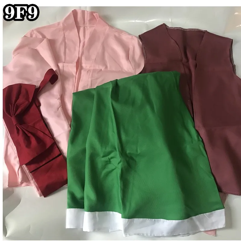 Полный комплект одежды включает в себя: верхнюю рубашку, внешнюю розовую майку, брюки, поясную повязку