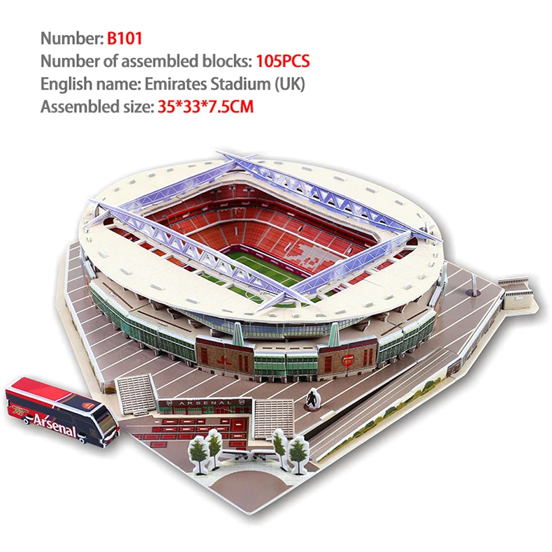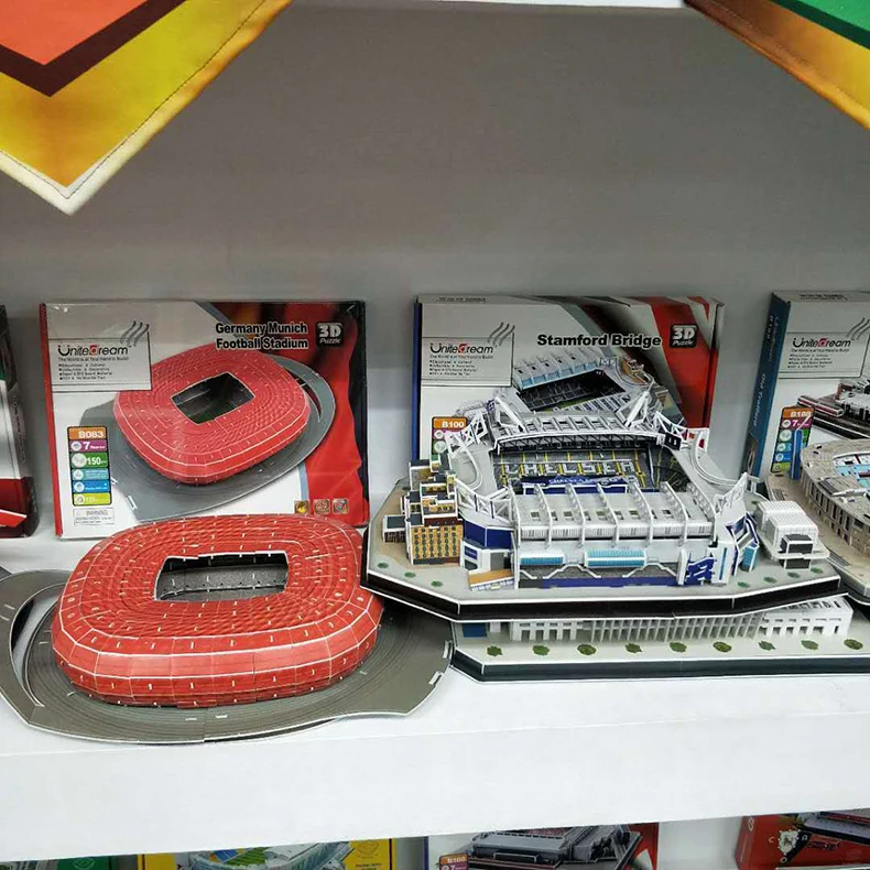 Описание: -Название продукта: 3D пазл всемирно известный футбольный стадион Европейская футбольная площадка сборная Строительная модель Пазлы Развивающие игрушки для детей -Материал: бумага -Размер: показано на картинке -Состояние на 100% абсолютно новый и высокое качество Посылка включает: -1 набор знаменитых футбольных пазлов для стадиона