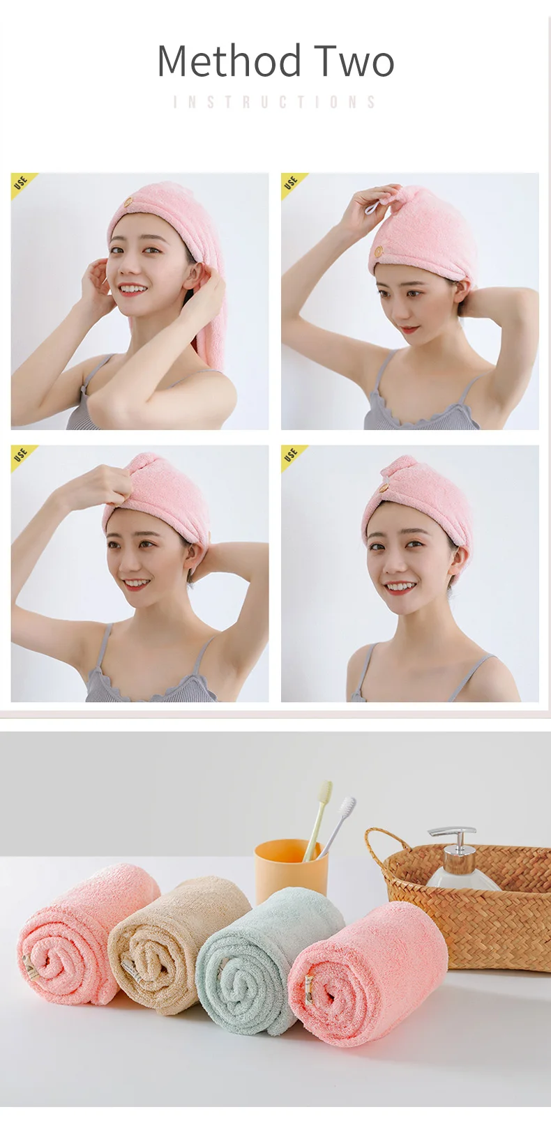 Описание 100% Бренд новый высокое качество Цвет: розовый, синий, фиолетовый, материал: микрофибра Размер: около 25x65 см Особенности: Ультратонкий композитный материал с застежкой на пуговицы. Когда вы принимаете душ, ваши волосы не будут скользить. Чрезвычайно прост в использовании. Быстросохнущая шапочка идеально подходит для повседневного использования дома, в тренажерном зале и на ходу. Это хороший помощник для купания, нанесения макияжа и мытья лица. Подходит для всех типов и длин волос. Используйте воздуходувку, чтобы повредить ваши красивые волосы. Сухой верх впитывает влагу из волос. Это самый нежный и разрушительный метод сушки длинных волос. Изделие содержит: 1 Банное полотенце