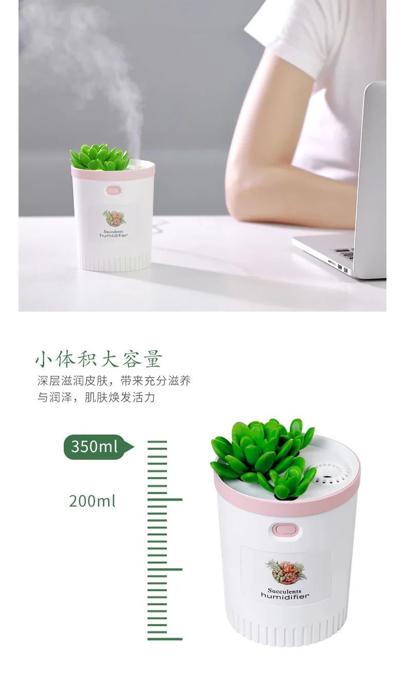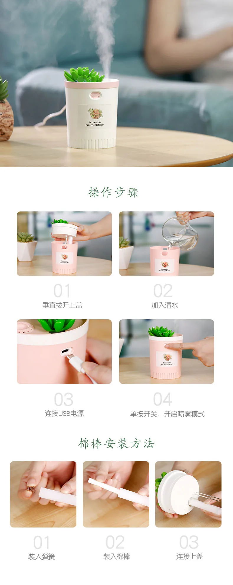 350 мл суккулентные растения ультразвуковой увлажнитель воздуха романтический светильник USB диффузор для эфирных масел, автомобильный очиститель, аэрозольный распылитель эфирных анион тумана