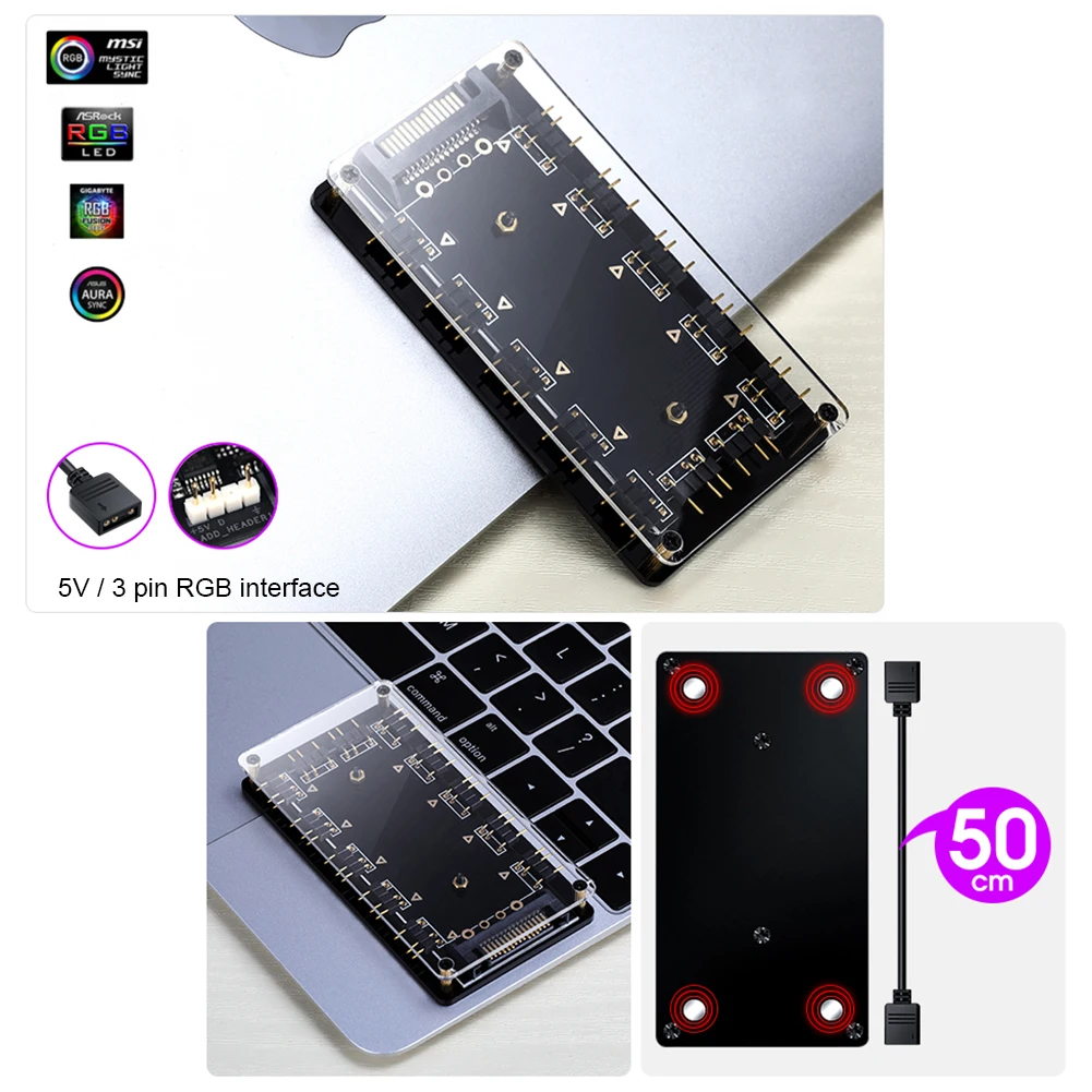5V 3Pin/12V 4Pin Магнитный RGB охлаждающий вентилятор разветвитель с кабель-удлинитель
