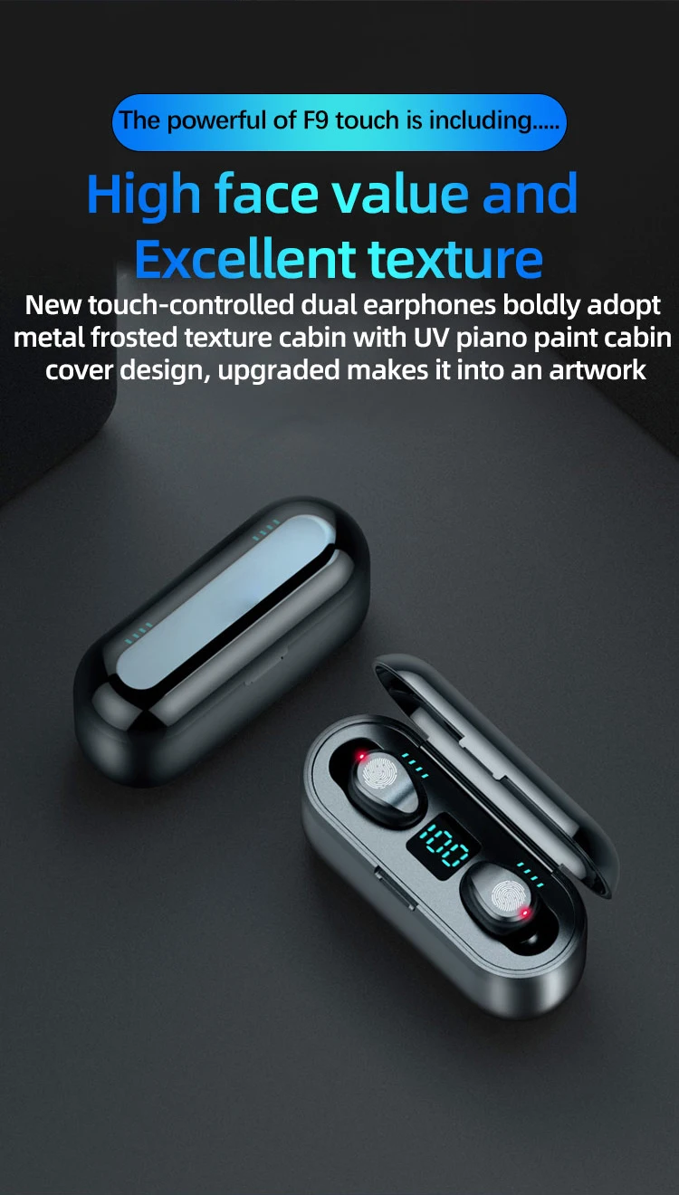 Наушники-вкладыши TWS с F9 Беспроводной наушники 5,0 Bluetooth Наушники Hi-Fi мини наушники для занятий спортом бега гарнитура Поддержка iOS/Android телефоны высокой четкости вызова