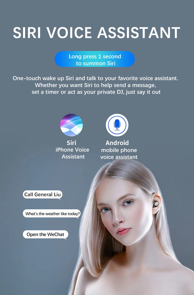 Описание: расстояние более 10 метров и время использования 4-5 часов 1. Беспроводные bluetooth-наушники 2. Светодиодный цифровой дисплей с двойной громкостью 3. Сенсорное управление Intelligente без сжатия (воспроизведение/пауза, ответ/отключение, переключение музыки) 4.Bluetooth 5,0 5. Быстрая зарядка с 4 контактами 6. Качество звука Hifi 7. Можно использовать в качестве держателя телефона 8. Hd голосовой помощник 9. Светильник вес 10. Интеллектуальное шумоподавление 11. Удобный и безболезненный для ушей, светильник вес, без давления, не вредит слуху 12. Водонепроницаемость и защита от пота, высокая производительность