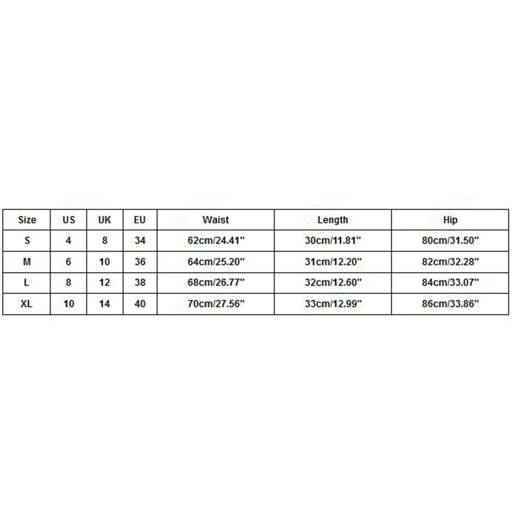 Пожалуйста, сравните размеры деталей Перед покупкой! Цвета могут немного отличаться В зависимости от настроек компьютера и монитора Пожалуйста, учитывайте разницу в 1-3 см Для ручного измерения, спасибо (все измерения в см и обратите внимание 1 см = 0,39 дюйма) Таблица размеров:Размер США Великобритания ЕС Талия Длина Бедра S 4 8 34 62 см/24,41'' 30 см/11,81'' 80 см/31,50'' М 6 10 36 64 см/25,20'' 31 см/12,20'' 82 см/32,28'' L 8 12 38 68 см/26,77'' 32 см/12,60'' 84 см/33,07'' XL 10 14 40 70 см/27,56'' 33 см/12,99 дюйма 86 см/33,86''