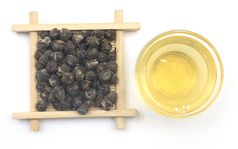 Этот чай Жасмин Цветок, смешанный с зеленым чаем, имеет как зеленый чай нежный, так и жасминовый аромат.