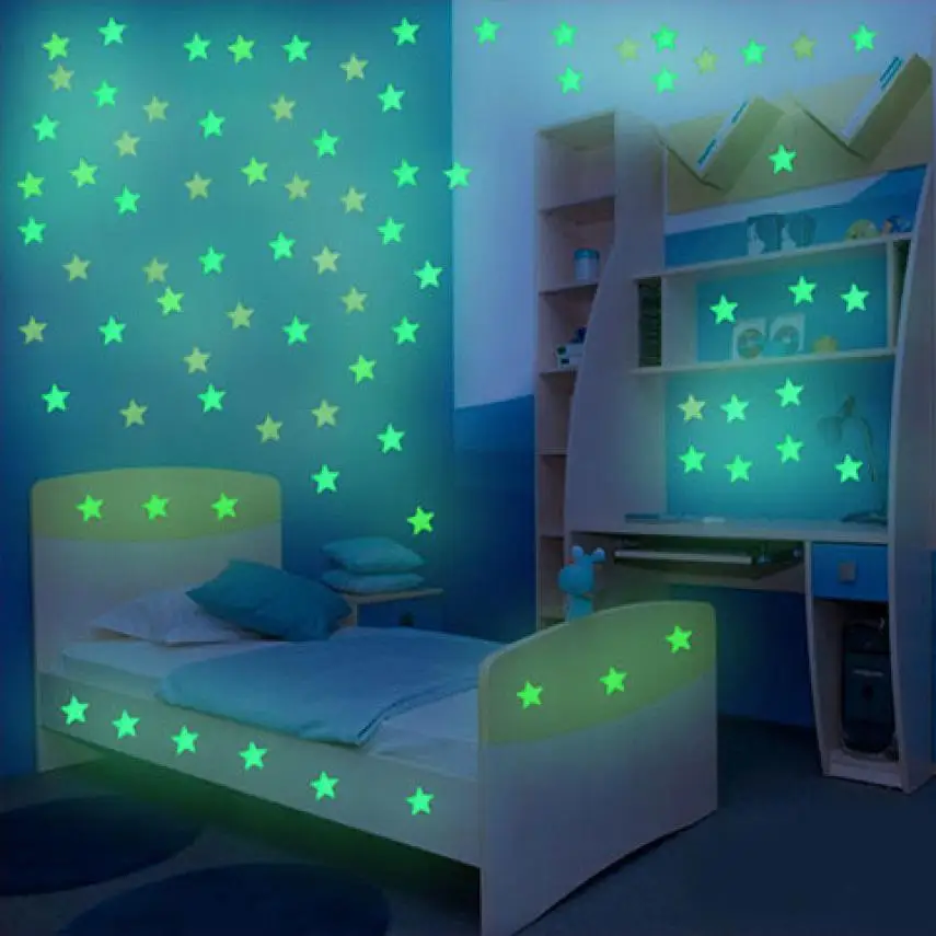100 шт 3D Звезда и Луна энергии хранения флуоресцентный светится в темноте светящиеся на стену наклейки для детской комнаты гостиной