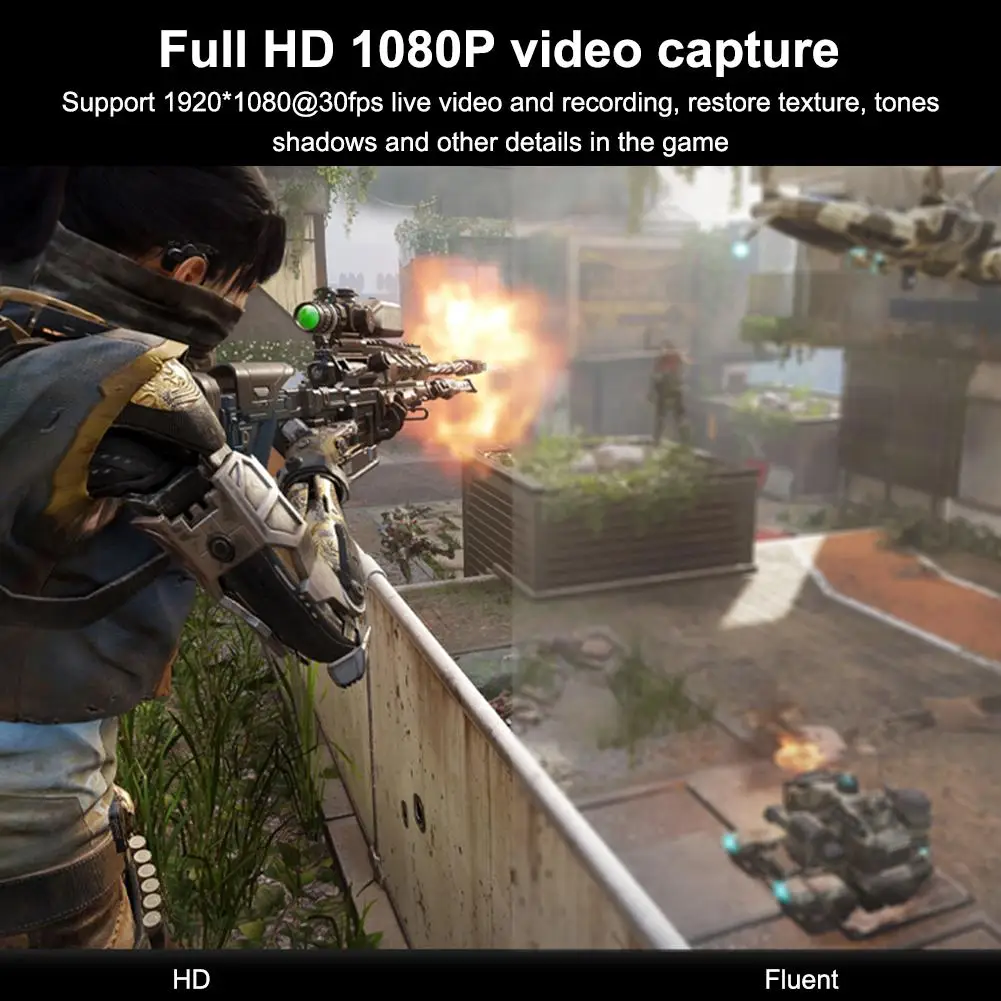 1. Захват игры HDMI: на основе высокоскоростной технологии USB 2,0, вы можете запечатлеть видеосигнал HDMI высокой четкости сигнального канала. Карта захвата игры подходит для устройств с выходом HDMI, таких как устройства для PS4, для Xbox one, для Wii U и для переключения.1 * HDMI к USB 2,0 Карта видеозахвата