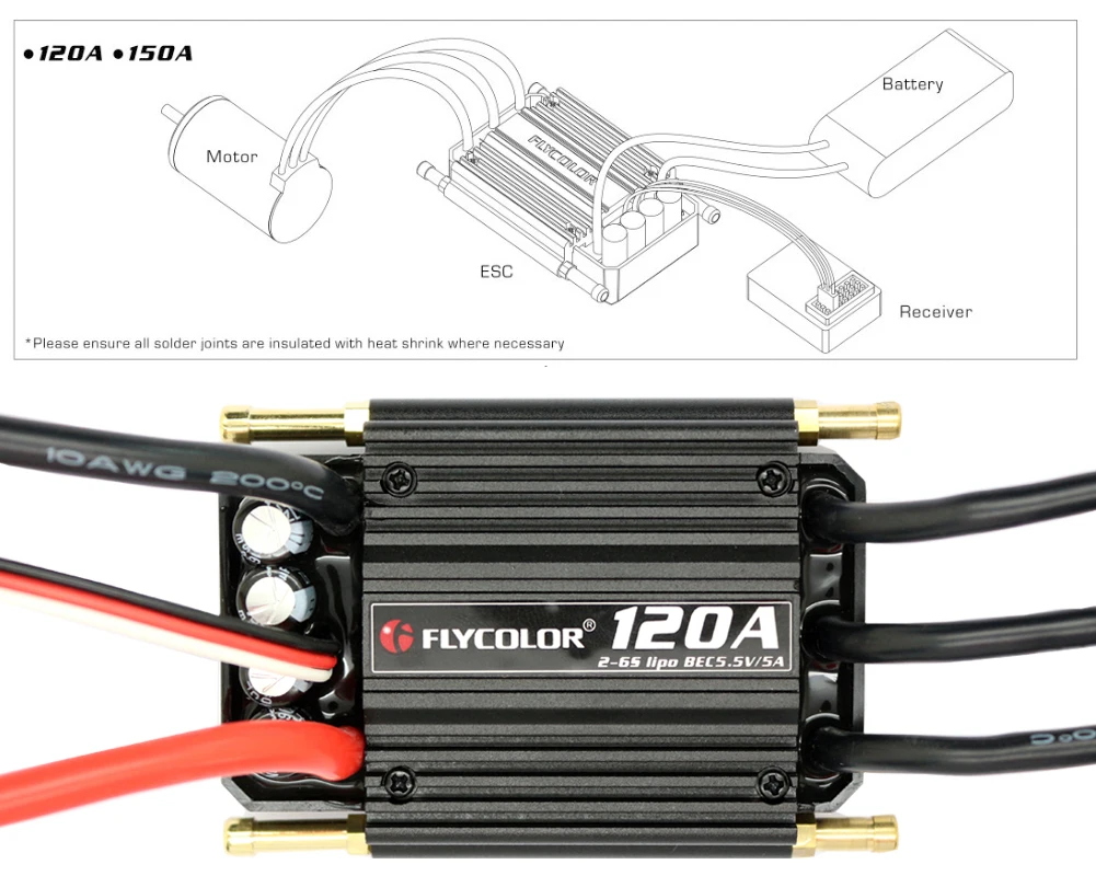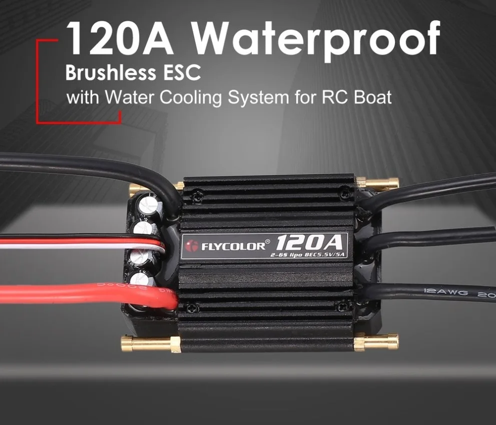 Выход: непрерывный 120A, Burst 720A до 10 секунд. Входное напряжение: 2-6S BEC: 5,5 В/5A Размер: 75*56,5*26 мм, не включает трубка для охлаждения воды Размер: 82*56,5*26 мм, включая трубка для охлаждения воды Вес: 155 г. Применение: максимум 120 см лодки Технология оптимизации эффективности вождения со встроенным BEC в 5А до 8А, Лучшая производительность, затем асинхронный выпрямитель BEC