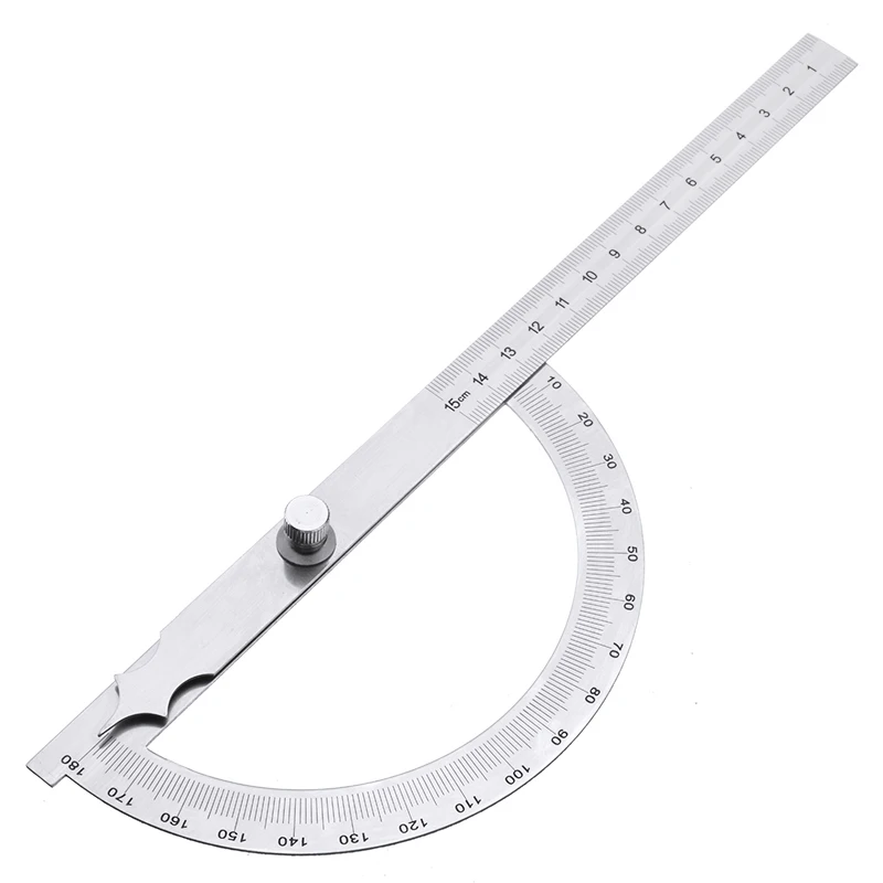 Круглый транспортир с двойным градуированием от 0 до 180 ° и линейкой от 0 до 15 см.