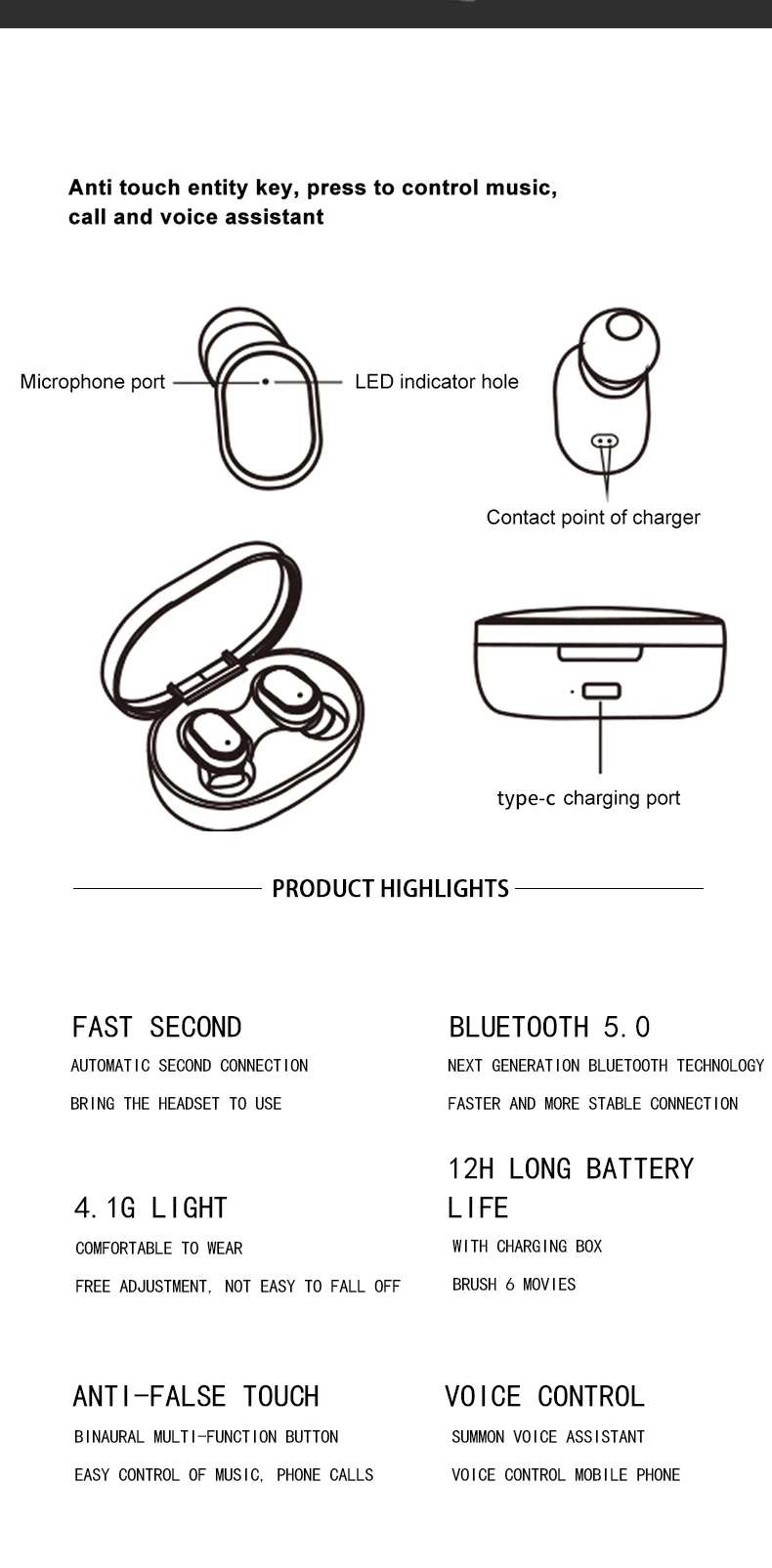 Touch Key Mini True беспроводные наушники, наушники Super bass TWS, спортивные наушники с HD микрофоном для IOS Android, смартфонов
