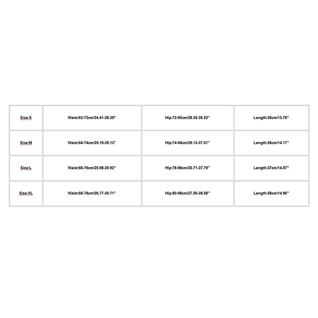 Размер Талия Бедра Длина S 62-72 см/24,41-28,35" 72-92 см/28,35-36,22 дюйма 35 см/13,78'' М 64-74 см/25,19-29,13" 74-94 см/29,13-37,01'' 36 см/14,17'' L 66-76 см/25,98-29,92" 78-96 см/30,71-37,79'' 37 см/14,57'' XL 68-78 см/26,77-30,71" 80-98 см/27,56-38,58'' 38 см/14,96''