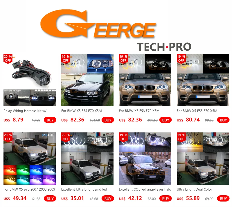 Important: This ccfl angel eyes halo rings are different from other brands angel eyes. This is a Car styling, Not ordinary Retrofit Accessories. It does not need to cut the diffuser, lens, and plastic inside the headlight. Geerge factory angel eyes have been pursuing a perfect installation, as far as possible without destroying the internal structure of the headlight. This is impossible for other brands of goods. it is Error free, no flickering, no annoying warning message on dashboard.Vehicle Application