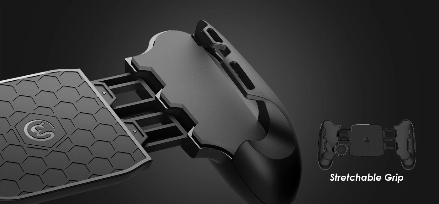 GameSir F1 джойстик имеет телескопическое плечо дизайн, который может обеспечить большую расширение места для смартфонов с длиной от 5,5 дюйма (140 мм) до 6,7 дюйма (170 мм), А также 4,5 дюйма (114 мм) до 6 дюймов (152 мм) Размер дисплея. Он очень подходит для iPhone X, iPhone 8 plus, Samsung Note 8 и Xiaomi MIX2. С обеих сторон рукоятки имеются эластичные подушечки из ЭВА для защиты вашего телефона и обеспечения его положения. Эргономичный дизайн рукоятки может уменьшить усталость рук, вызванную длительными играми.