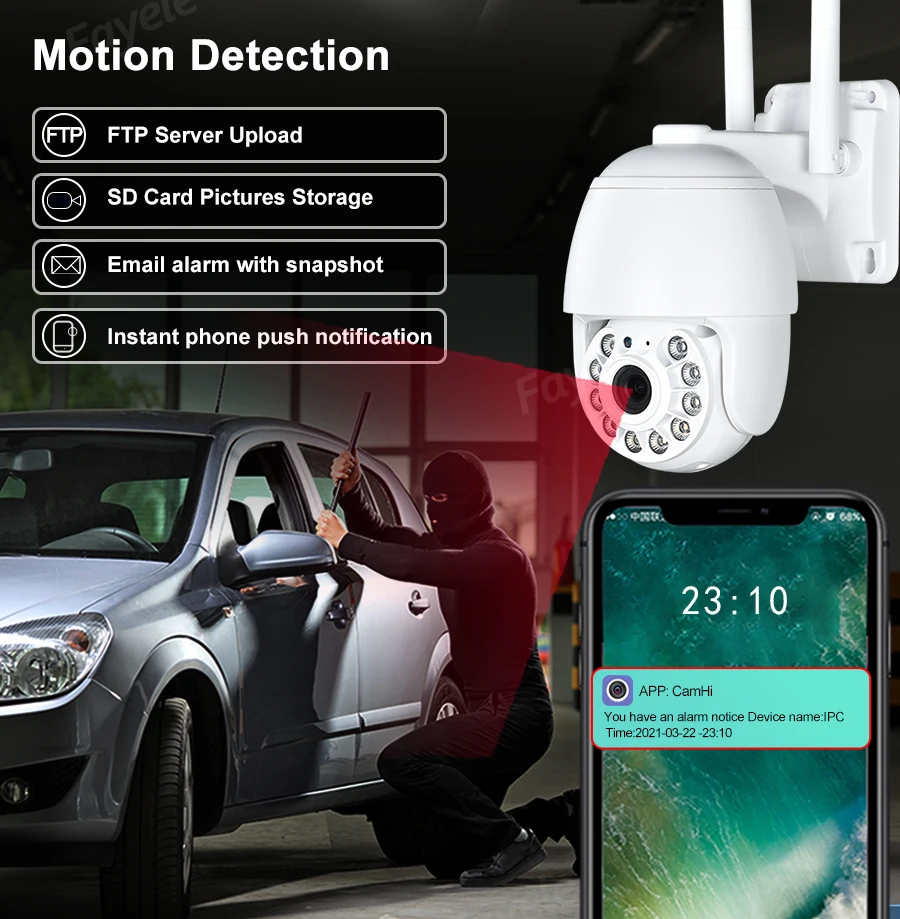 4) Сигнализация обнаружения движения с оповещением по электронной почте и уведомлением о телефоне