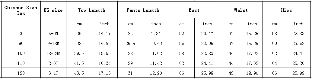 Chinese Size:80,90,100,110,120 US Size:6-9M,9-18M,18-24M,2-3T,3-4T Material:Ployester,Cotton Package:Opp Bag