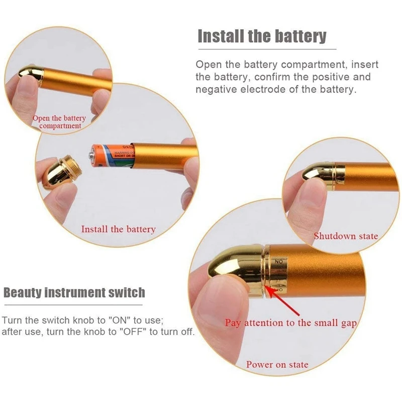 Источник питания-частота вибрации: около 6000 раз в минуту; Всегда используйте материал лучшего качества-специальная обработка поверхности золота 24k. Безопасно и эффективно способствует циркуляции крови.