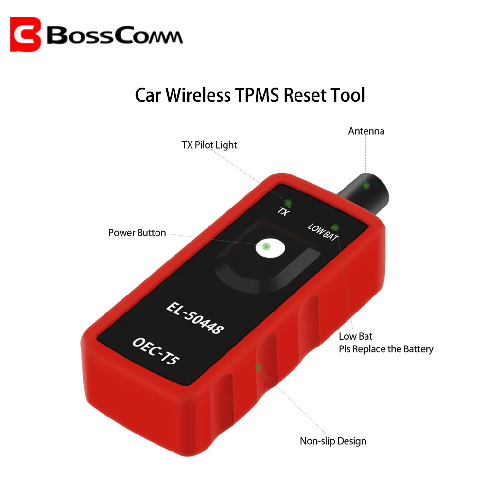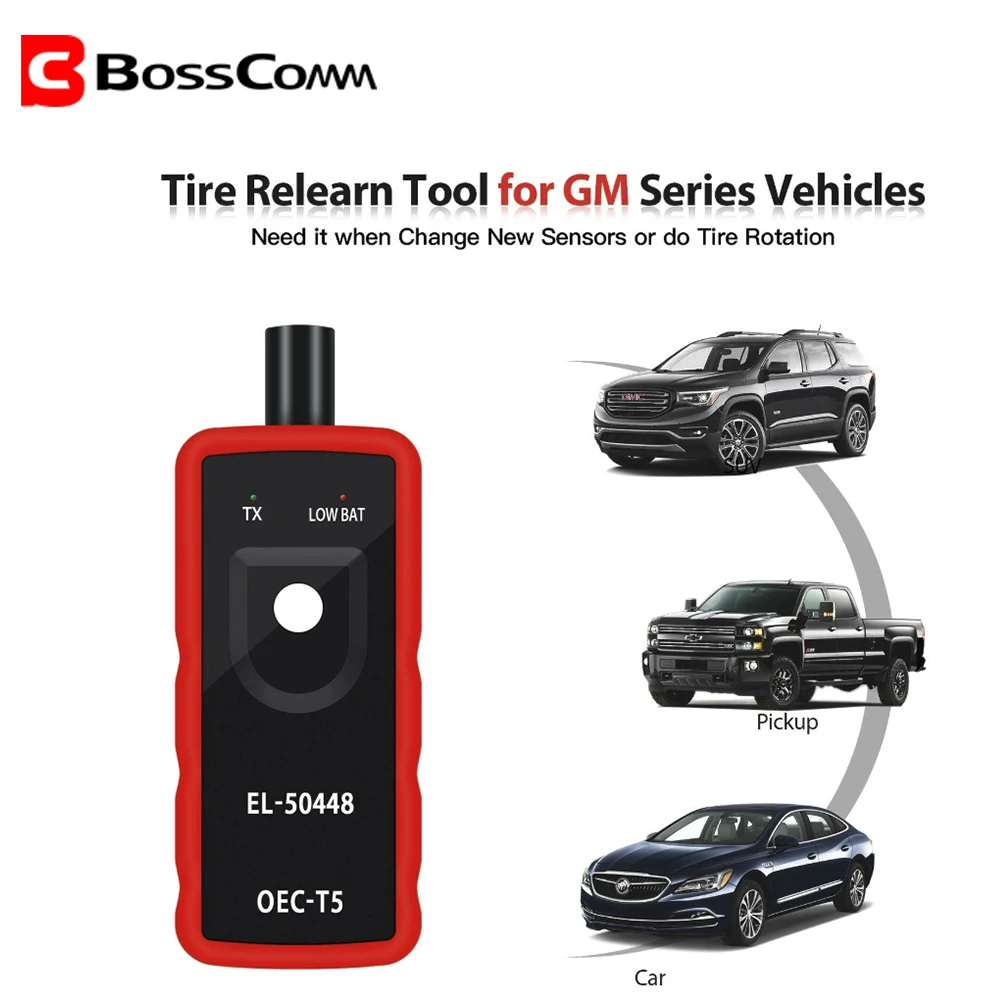 Автомобильный TPMS беспроводной инструмент сброса EL-50448 Автомобильный датчик контроля давления в шинах датчик OEC-T5 для серии GM красная портативная версия. EL-50448 инструмент сброса TPMS-это определенные диагностические инструменты, которые могут считывать датчик давления в шинах для моделей в и после 2012.EL- 50448 TPMS инструмент сброса работает на всех общих двигателях (Buick, Cadillac, Chevrolet, GMC) продукция, произведенная на рынке Северной Америки. Он не будет работать, если вы приобрели послепродажные датчики, которые являются неправильной частотой. EL50448 подходит для большинства автомобилей G.M, оснащенных системой контроля давления в шинах 315 или 433 МГц (TPM). Эта процедура повторного обучения может быть выполнена с помощью специального инструмента EL-50448.