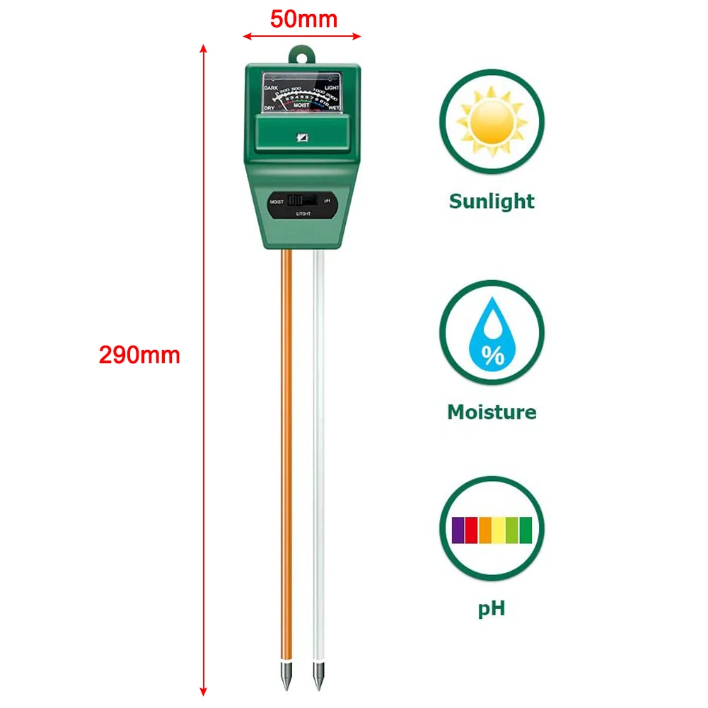 3-в-1 Функция:Проверьте влажность почвы, значение pH и уровень солнечного света растений с помощью нашего почвенного счетчика, помогает вам специализироваться на захвате, когда вам нужно поливать ваше растение.