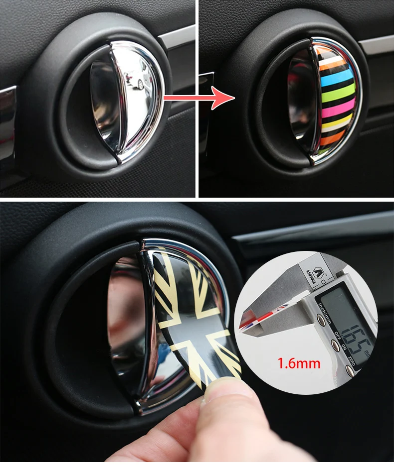 Материал: 3D наклейка Характеристики: 2 шт./компл. Место установки: чаша двери автомобиля Способ установки: Приклеивание (не требуется резка или сверление) Этапы установки: легко устанавливается с помощью предварительно нанесенного двухстороннего скотча, простого отклеивания и приклеивания Особенность: Модный, устойчивый к царапинам, прочный, украшает ваш автомобиль Подходящие модели: для BMW MINI ONE Cooper S R55 R56 R60 R61 CLUBMAN