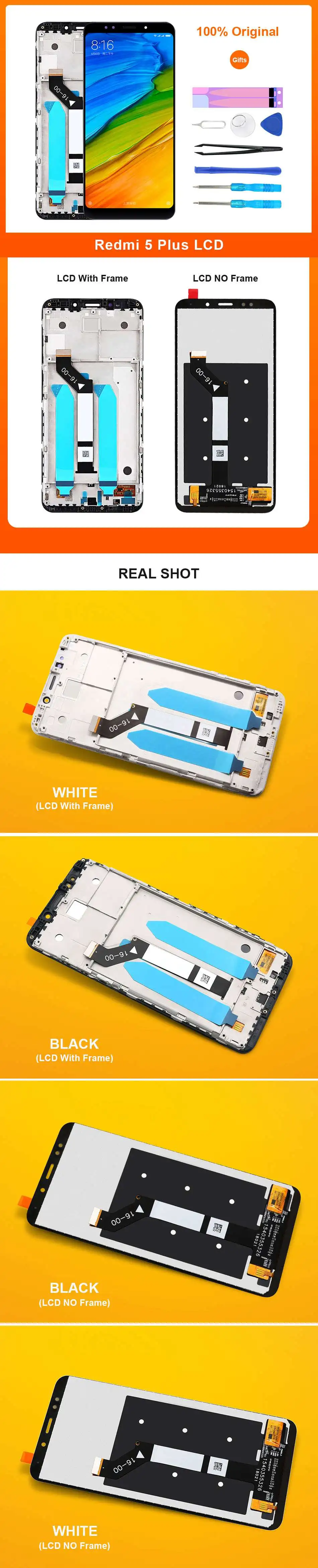 Оригинальный Xiaomi Redmi 5 Plus ЖК-дисплей 5,99 "сенсорный экран дигитайзер с рамкой