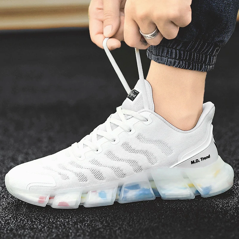 SMS Новая мужская обувь Уличная обувь для бега прогулочные беговые кроссовки попкорн желе подошва шнуровка дышащая сетка мягкая спортивная обувь
