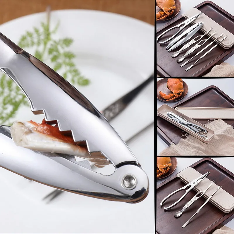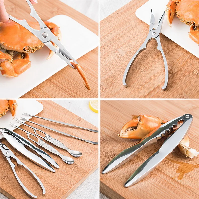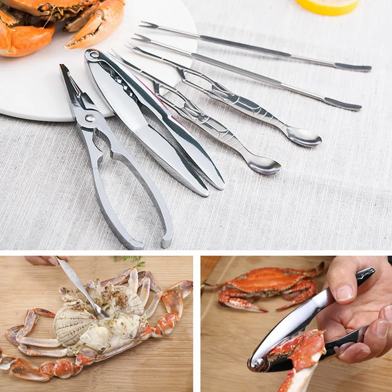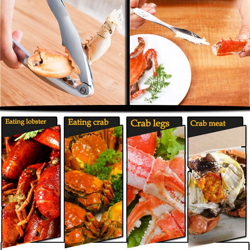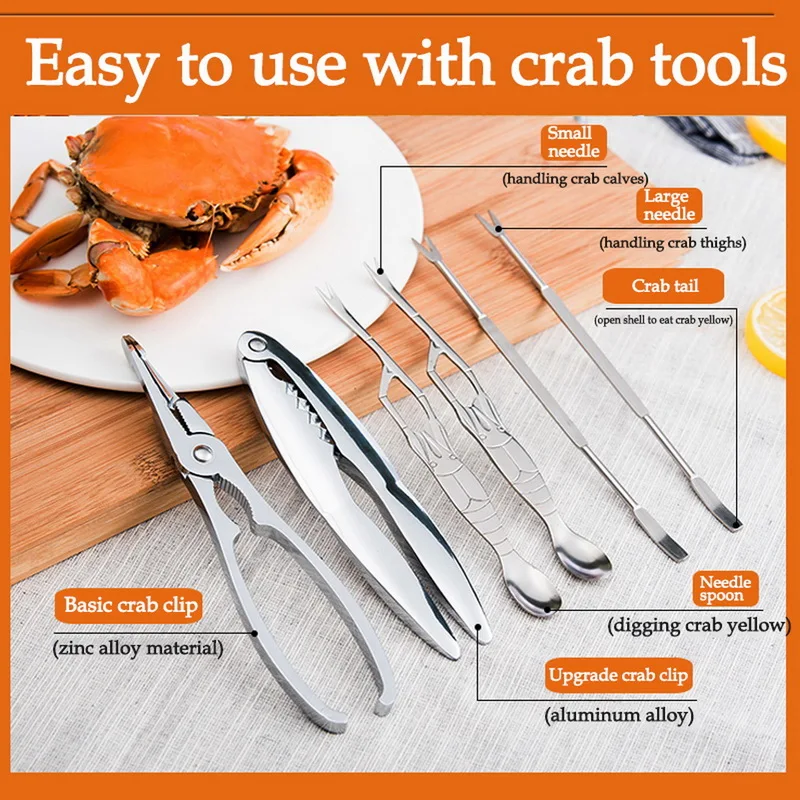 <Использование: Идеально подходит для еды крабов, омаров, моллюсков, устриц и многого другого. <Прочный Материал: изготовлен из нержавеющей стали, алюминиевого сплава и цинкового сплава, сверхпрочный и прочный. <Портативный: поставляется с ящиком для хранения, вы можете хранить все инструменты в нем, так удобно и портативно для переноски и хранения. <Чистота: чистите в посудомоечной машине или просто краску водой. <Крекеры: можно использовать для борьбы с самыми жесткими когтями Омаров и крабами. <Вилка: идеально подходит для подачи морепродуктов в скорлупе, что обеспечивает легкое удаление мяса. <Ложка: идеально подходит для сервировки крабов.