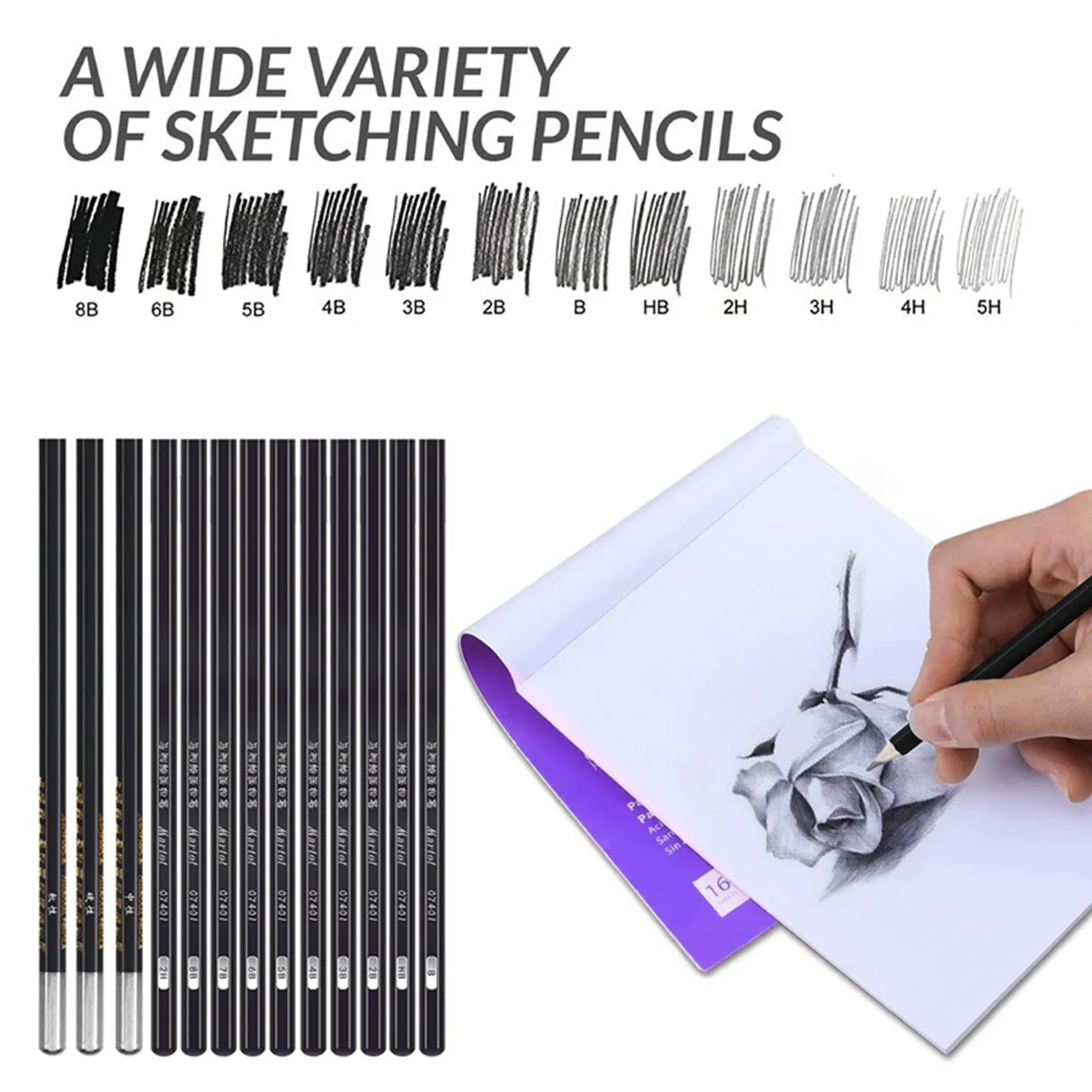 Состоит из 18 эскизных карандашей для рисования, 3 угольных карандашей, 3 бумажных карандаша для смешивания, 1 ножа, 1 двойного удлинителя карандаша, 1 ластика, 1 разминается ластик и 1 36-образными пазами холст рулон вверх Карандаш Чехол