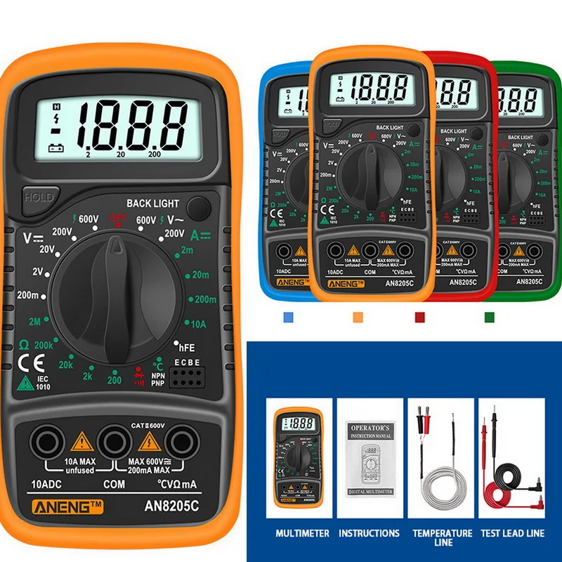 Цифровой мультиметр тестер напряжения измеряет сопротивление тока тесты диоды температура с подсветкой Функция удержания данных