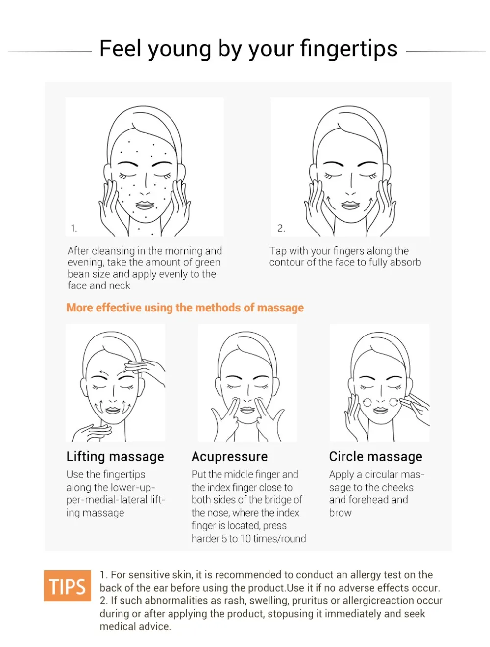 1. Для чувствительной кожи рекомендуется провести тест на аллергию на задней части уха перед использованием продукта. Используйте его, если не происходит никаких побочных эффектов.