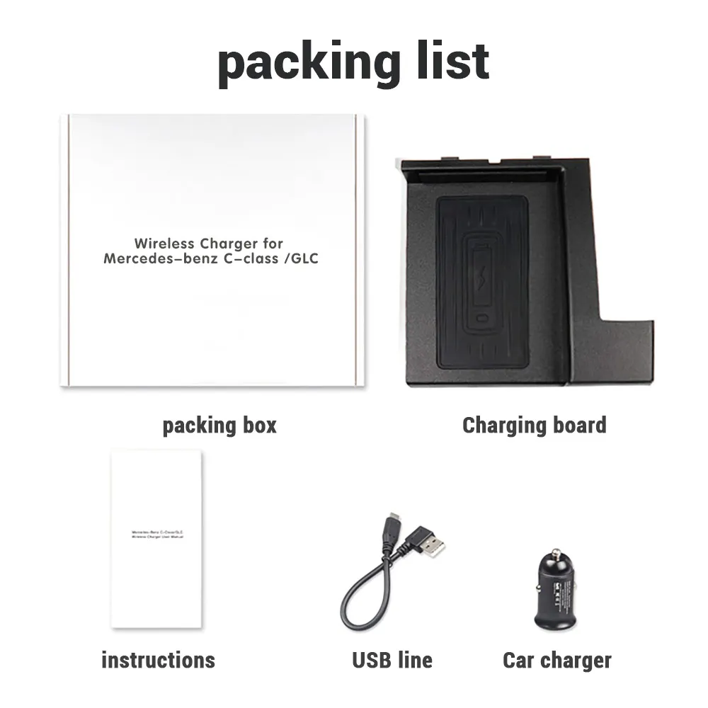 Беспроводной зарядное устройство * 1 Противоскользящий коврик * 1 Автомобильное зарядное устройство * 1 Зарядный кабель-1 шт. Руководство * 1