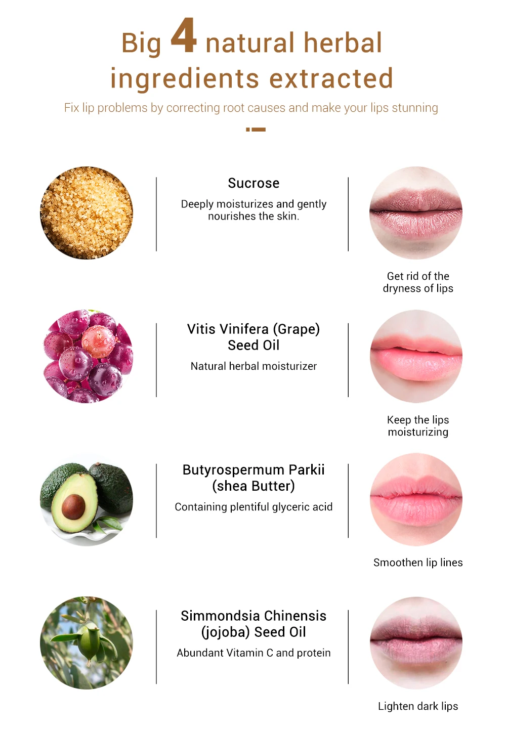 Рекомендуемая толпа: подходит для всех типов кожи, особенно для сухих, тусклых, грубых губ.